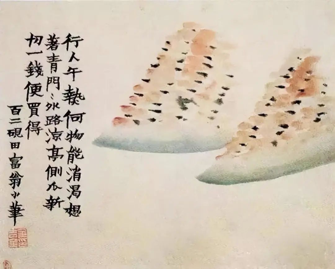 他画一派红瓤黑籽的绿皮西瓜,题曰:“行东谈主午热,何物能消渴。想着青门门外路,凉亭侧,瓜新切,一钱便买得。”不雅之,口中一凉,心中一动,不由想起金圣叹的话:“夏季于朱红盘中,自拔快刀,切绿千里西瓜,不亦快哉!”